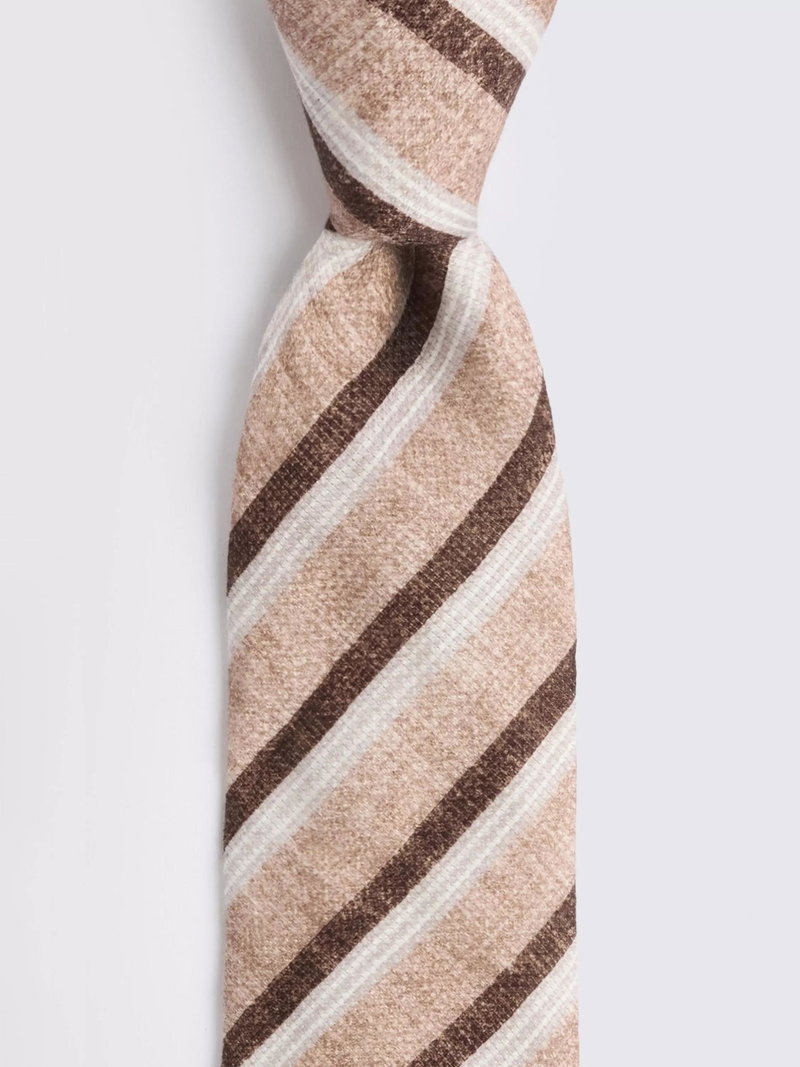 Italian Linen Blend Stripe Tie, Brown/White