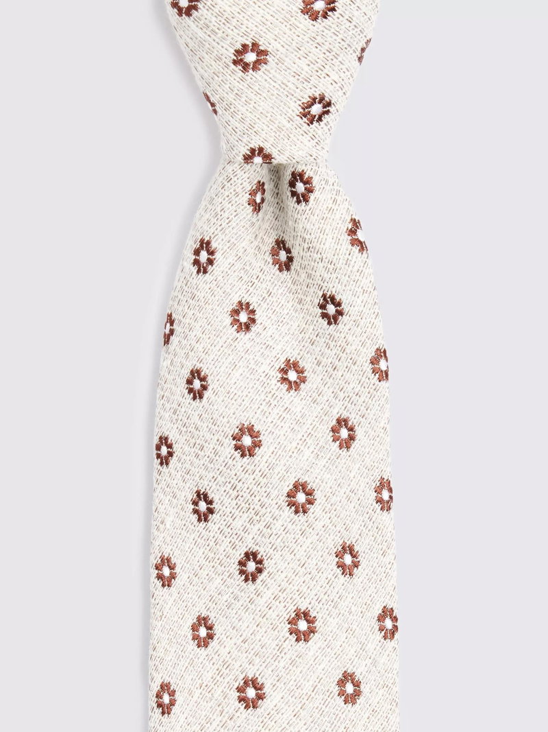 Italian Silk Blend Ditsy Floral Tie, Beige/Copper