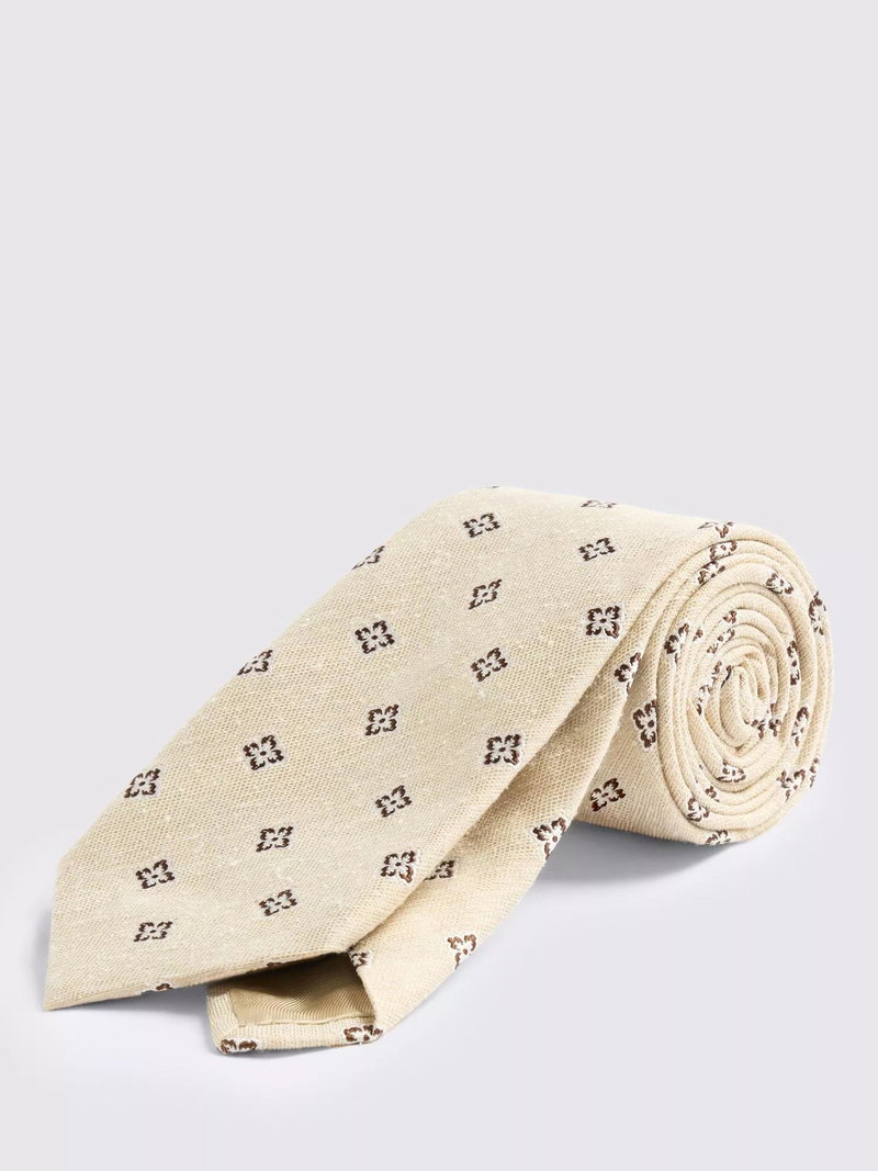 Italian Silk Blend Medallion Tie, Neutral/Brown