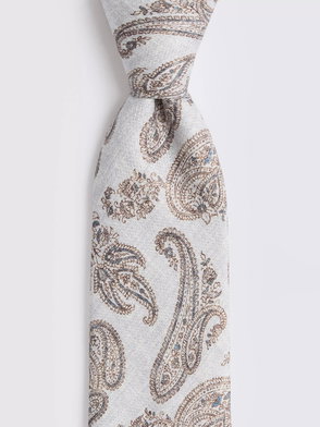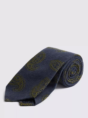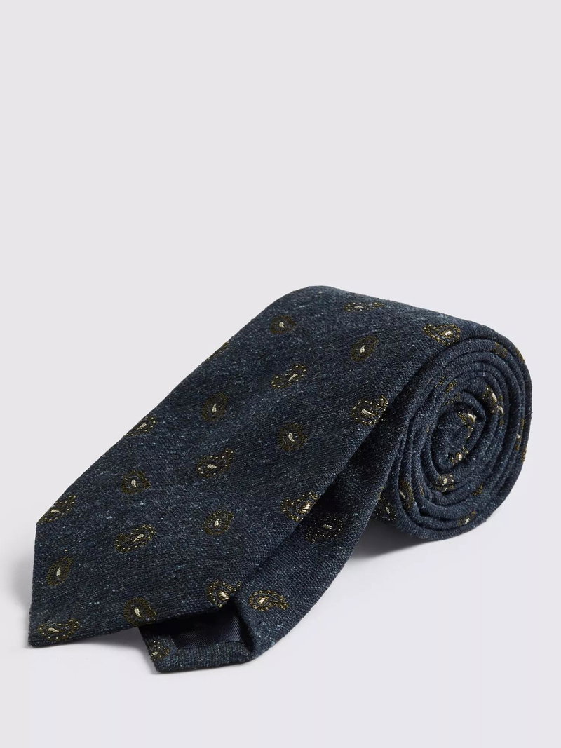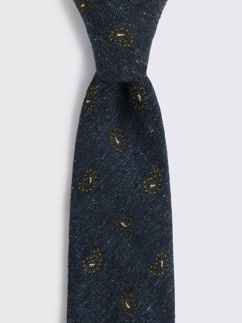 Italian Silk Blend Paisley Tie, Navy/Dark Olive