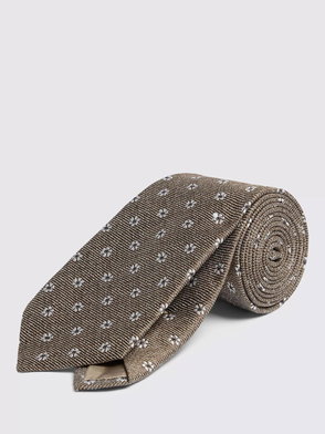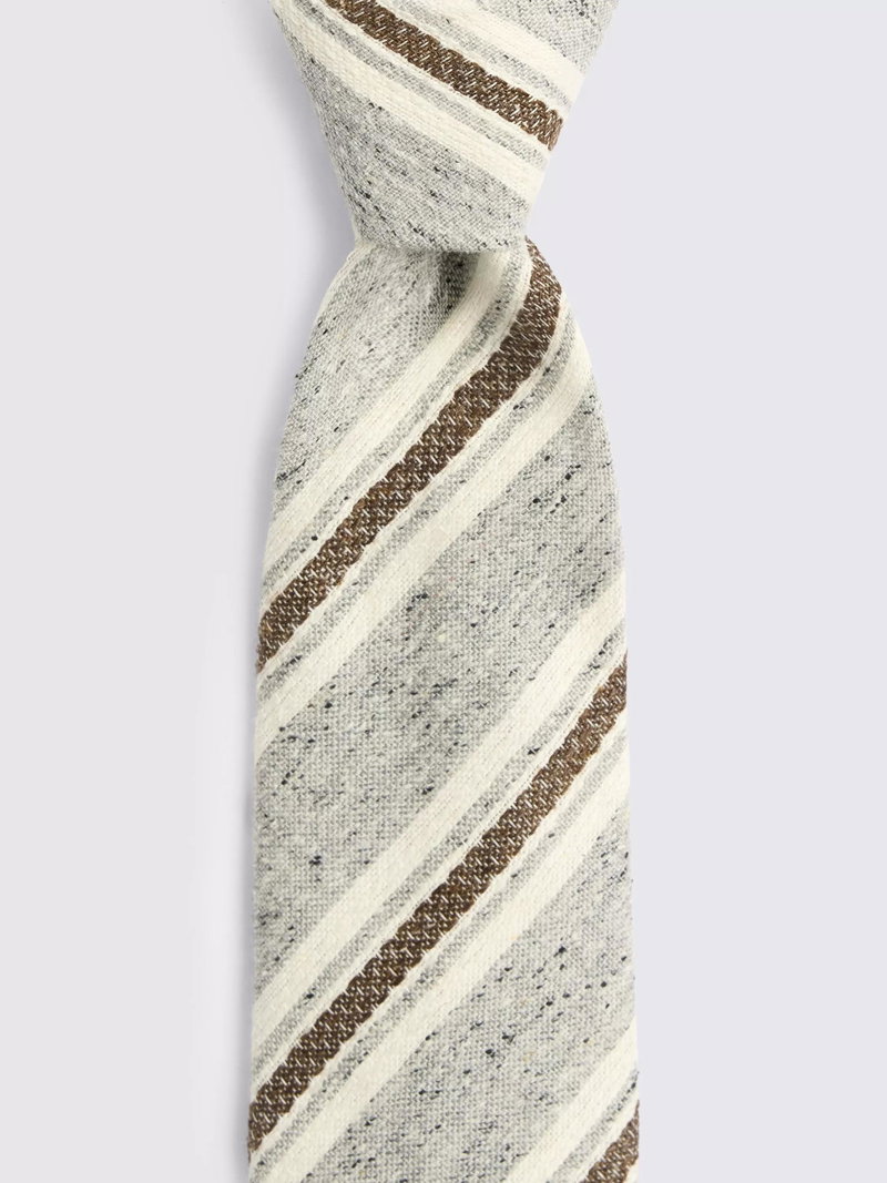 Italian Silk Blend Stripe Tie, Grey/Brown