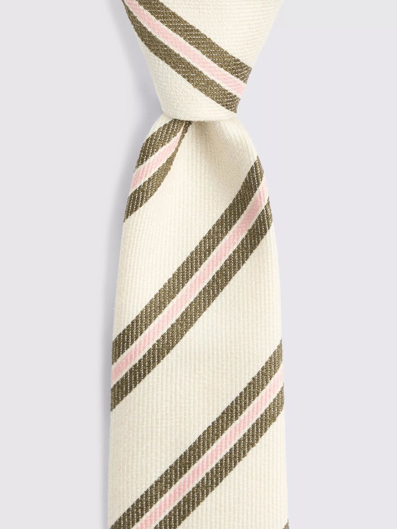 Italian Silk Stripe Tie, Off White/Olive/Pink