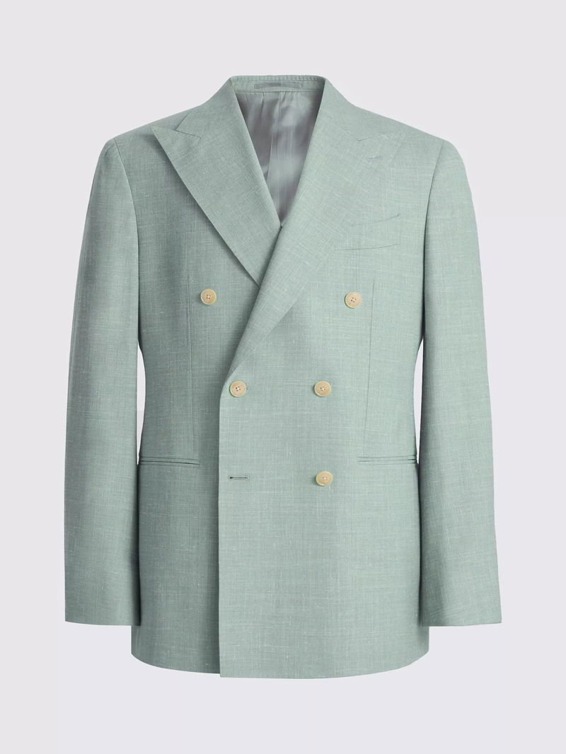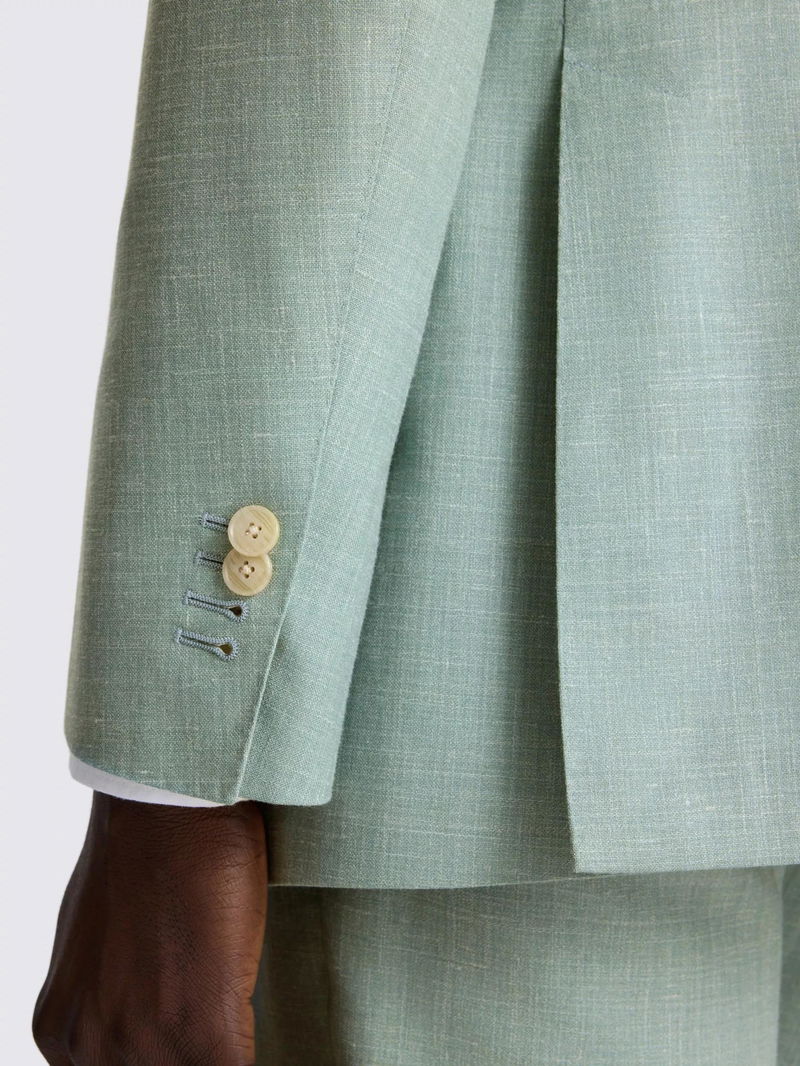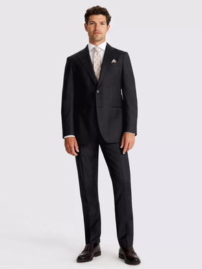 Crafted from the finest E. Thomas cloth, this tailored-fit suit is a premier choice for special events. The fabric consists of wool blended with silk and linen for a luxurious touch, while AMF stitching adds a note of fine craftsmanship to the jacket and trousers.