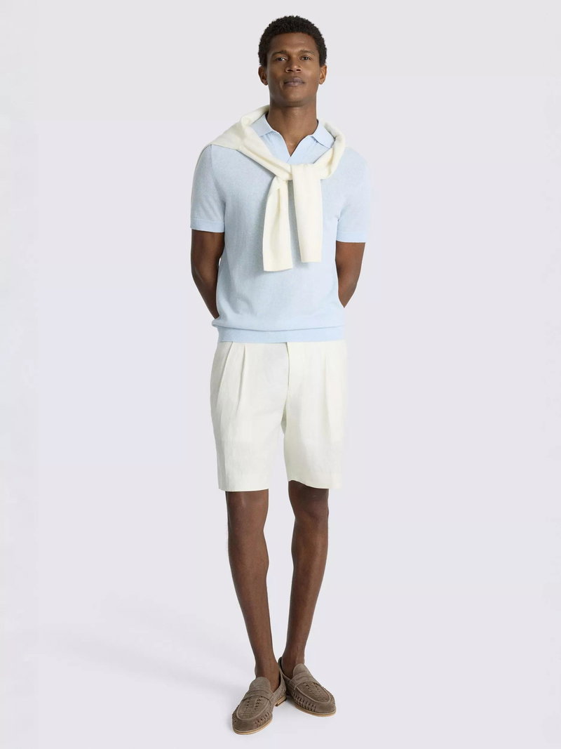 A cotton-linen blend polo shirt by Moss, carved with a classic neck, short sleeves and a regular fit.