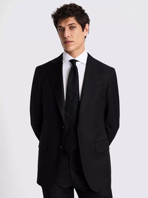 A trim tuxedo jacket that'll strike all the right notes at your next black-tie event, Moss has all the hallmarks of a great dress suit. It's delivered in classic black, cut to a slim fit and detailed with tonal silken trims at the lapels, buttons and jetted pockets.