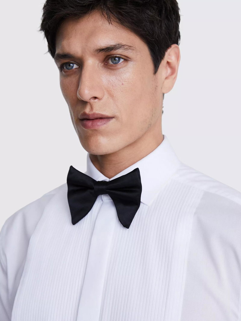 Regular Fit Cotton Pleated Dress Shirt, White