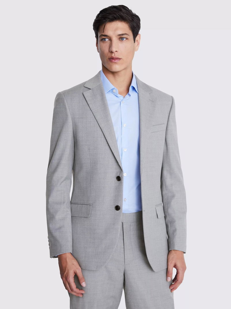 Crafted in light-grey stretch fabric for easy movement and lasting shape recovery, it's tailored to a regular fit that'll look the part without feeling restrictive.