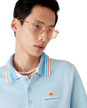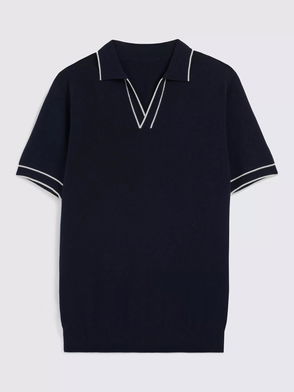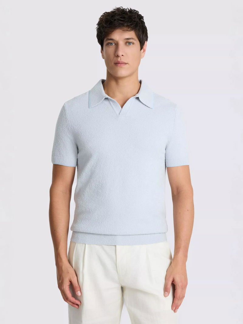 Skipper Collar Short Sleeve Boucle Polo Shirt