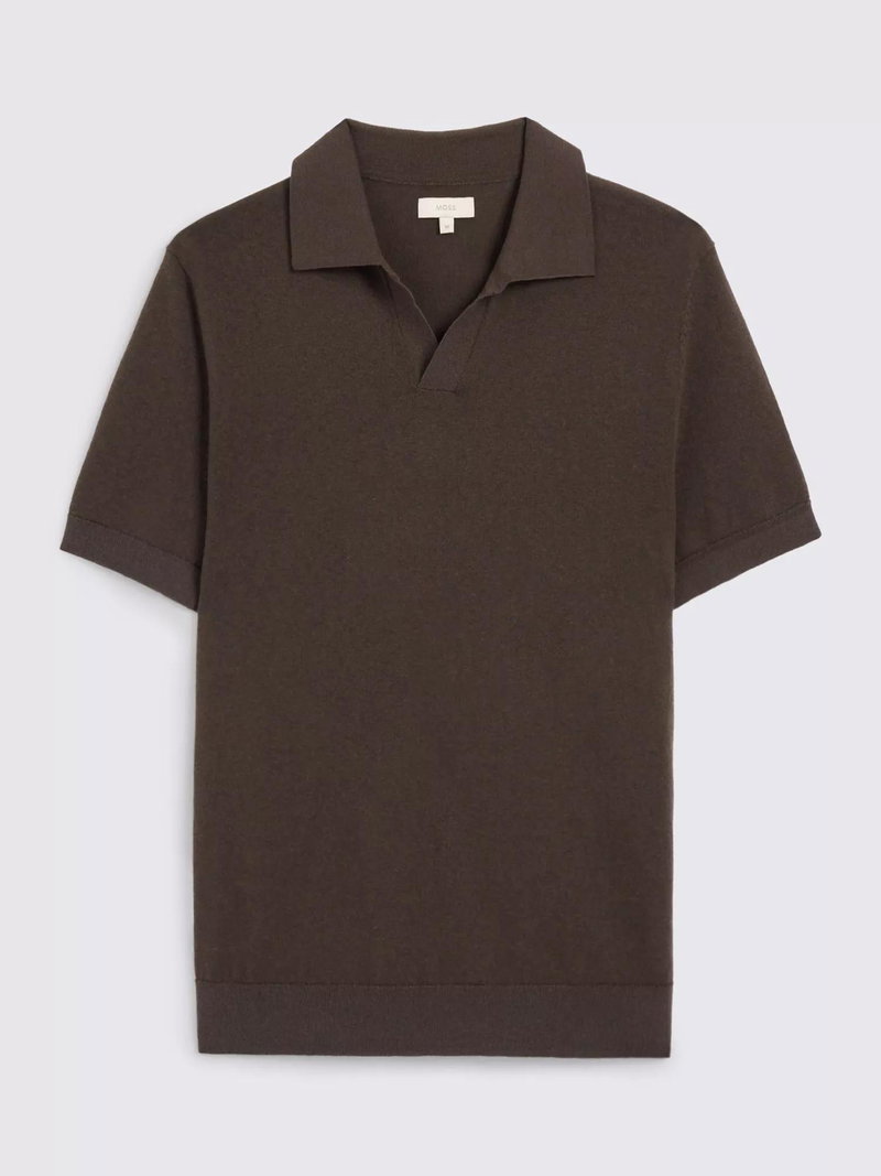 Great for building casual looks without the guesswork, this brown skipper collar polo shirt will go with all your foundations.