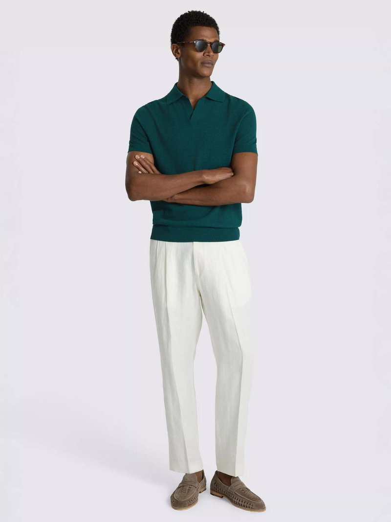 A cotton-linen blend polo shirt by Moss, carved with a classic neck, short sleeves and a regular fit.