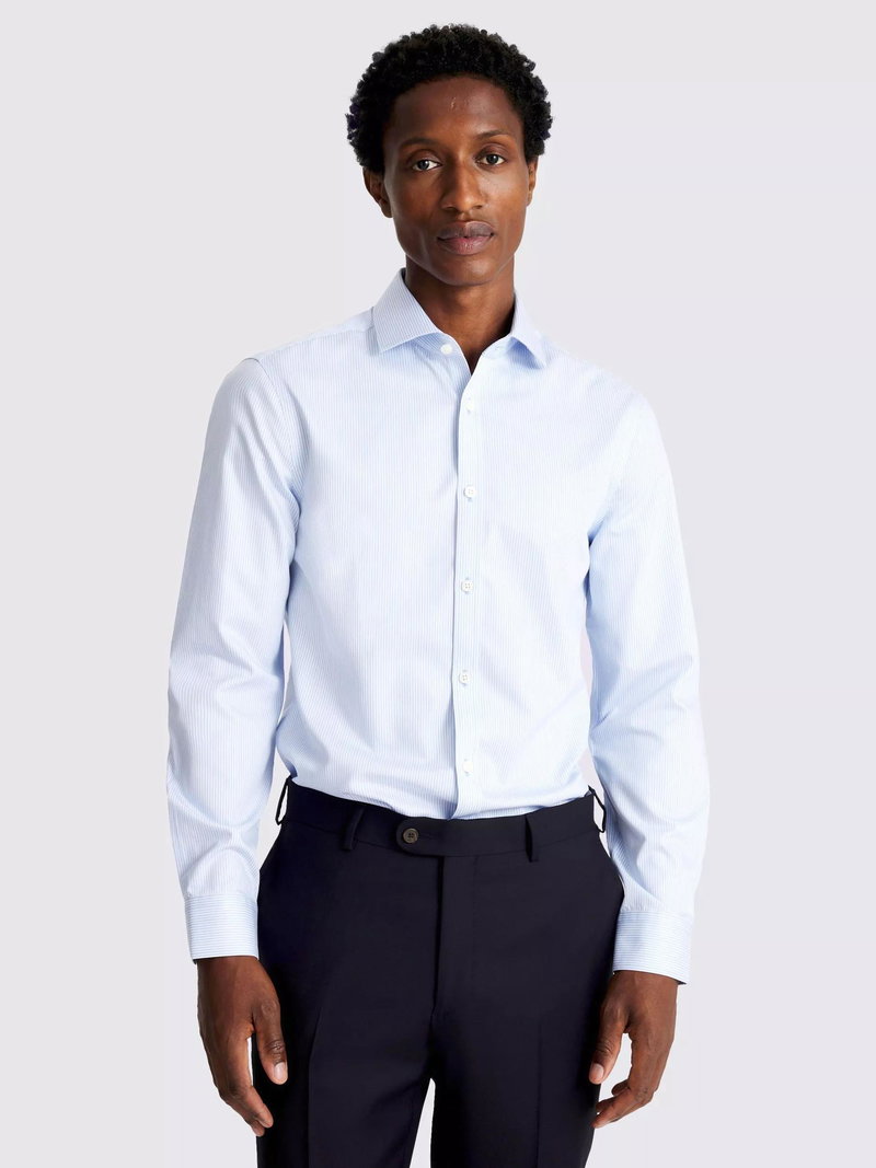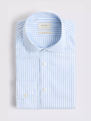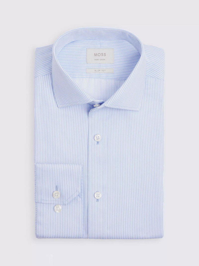 Slim Fit Cotton Stripe Non Iron Shirt, Sky Blue/White