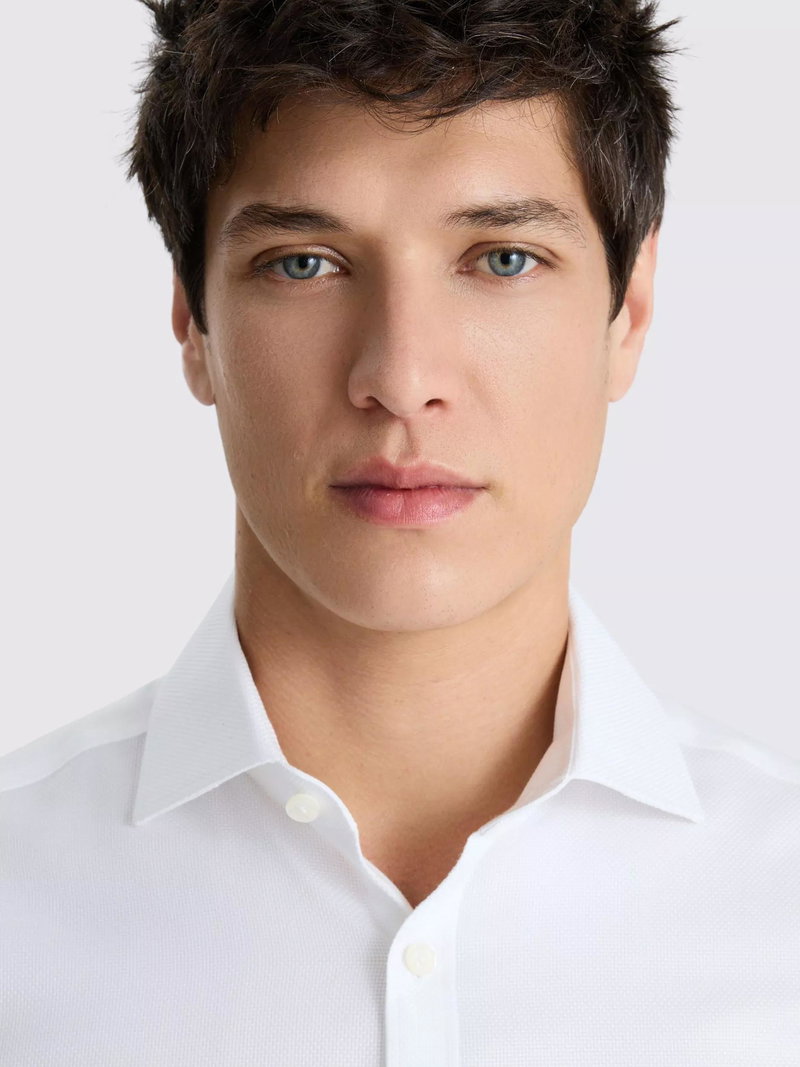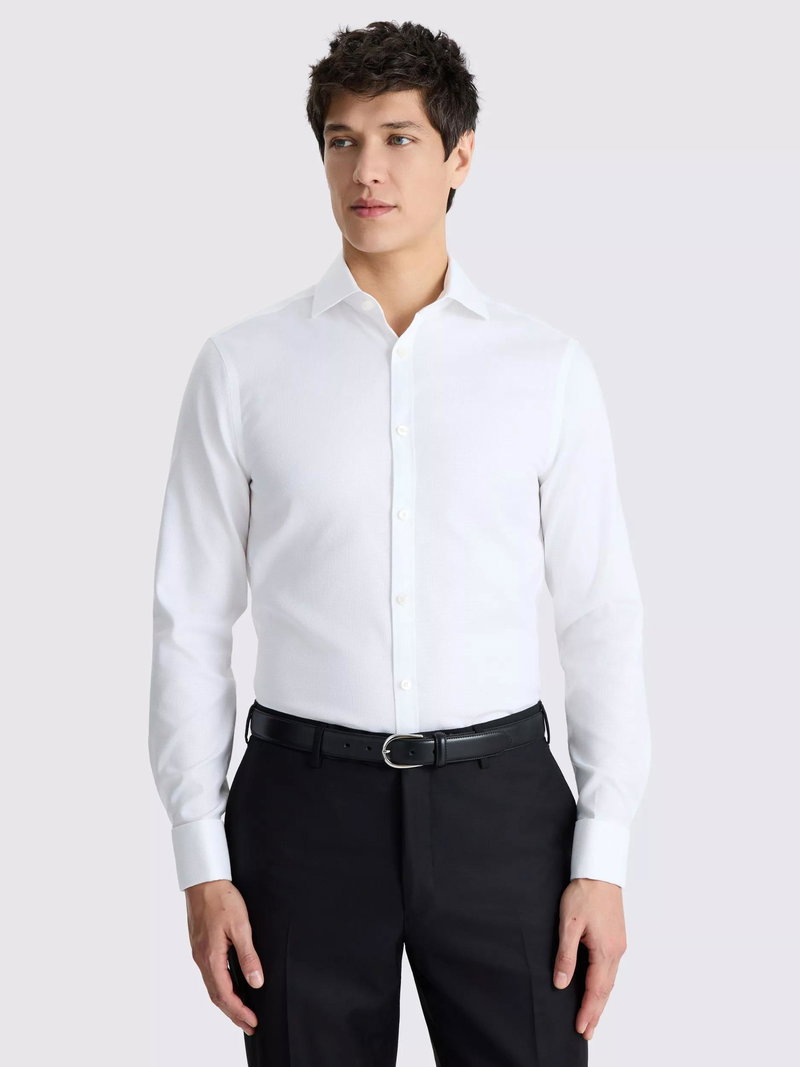 Slim Fit Long Sleeve Dobby Oxford Shirt, White