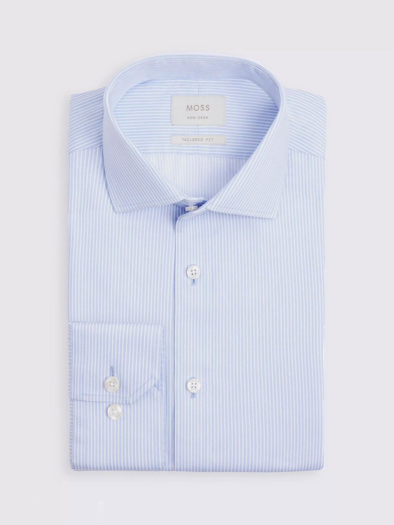 Tailored Fit Cotton Stripe Non-Iron Shirt, Blue