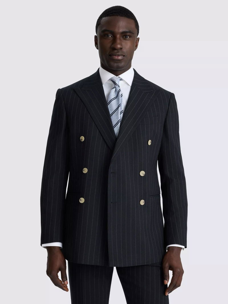 Tailored Fit Double-Breasted Striped Suit Jacket, Navy