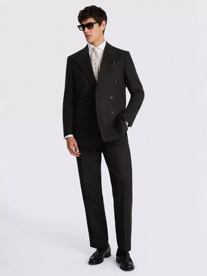 Tailored Fit Double Breasted Wool Blend Suit Jacket, Neutral