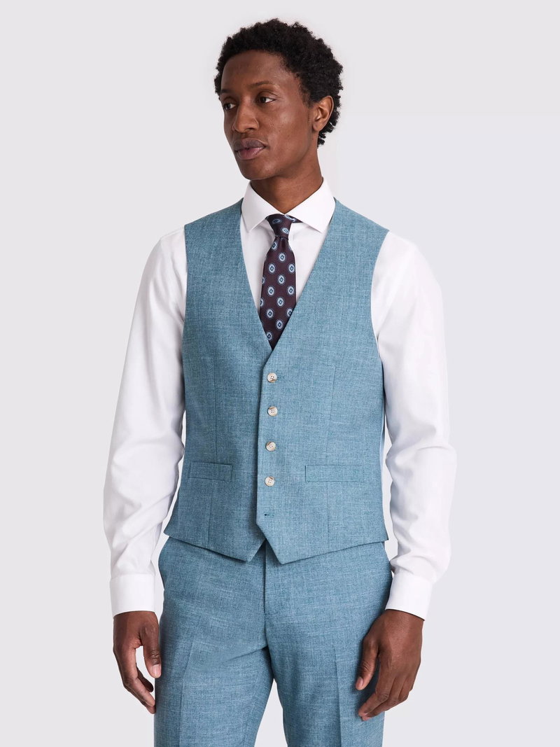 Tailored Fit Slub Suit Waistcoat, Teal