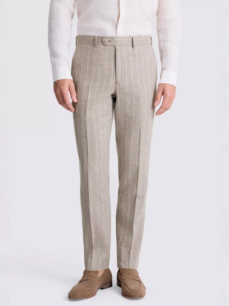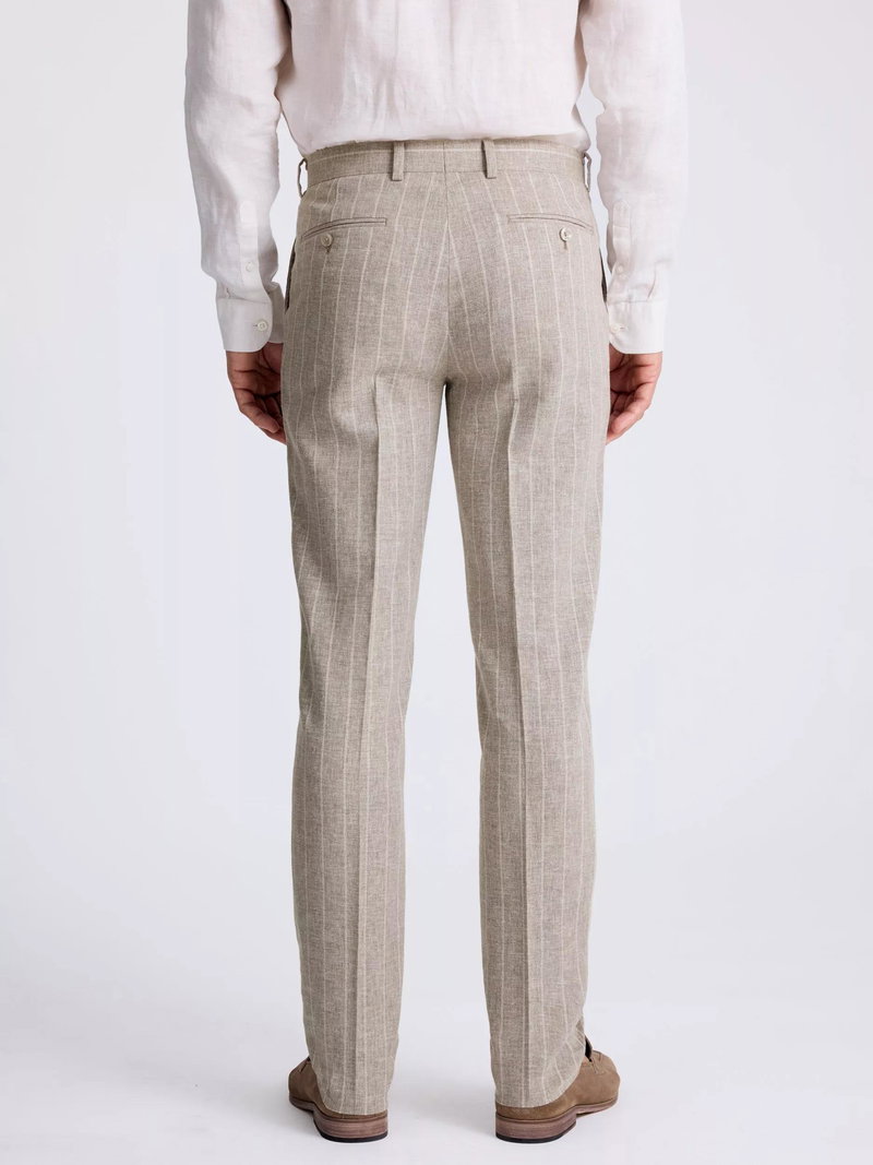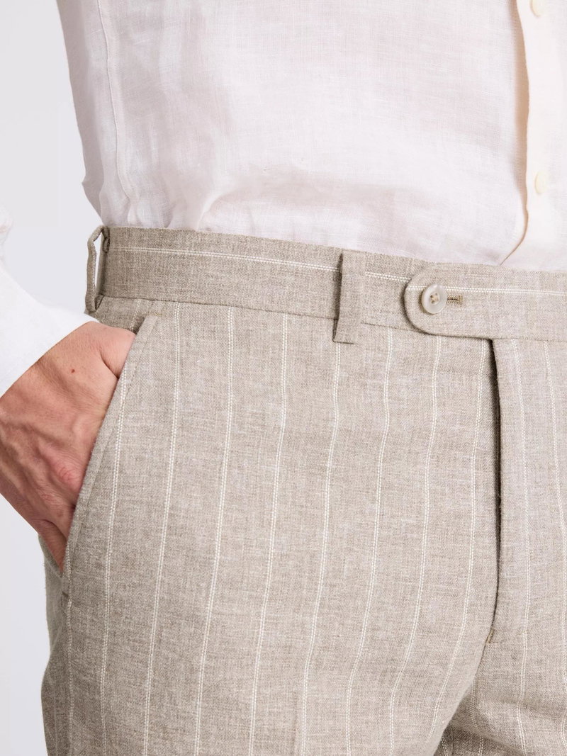 Tailored Fit Stripe Linen Suit Trousers, Taupe
