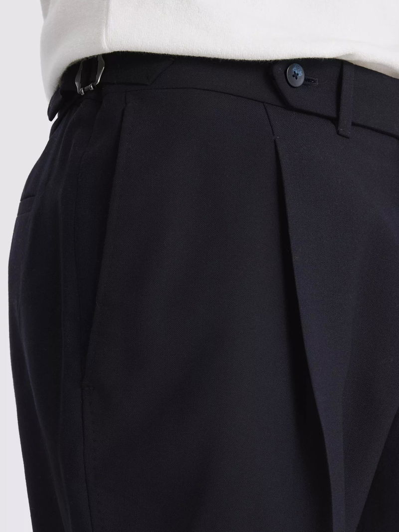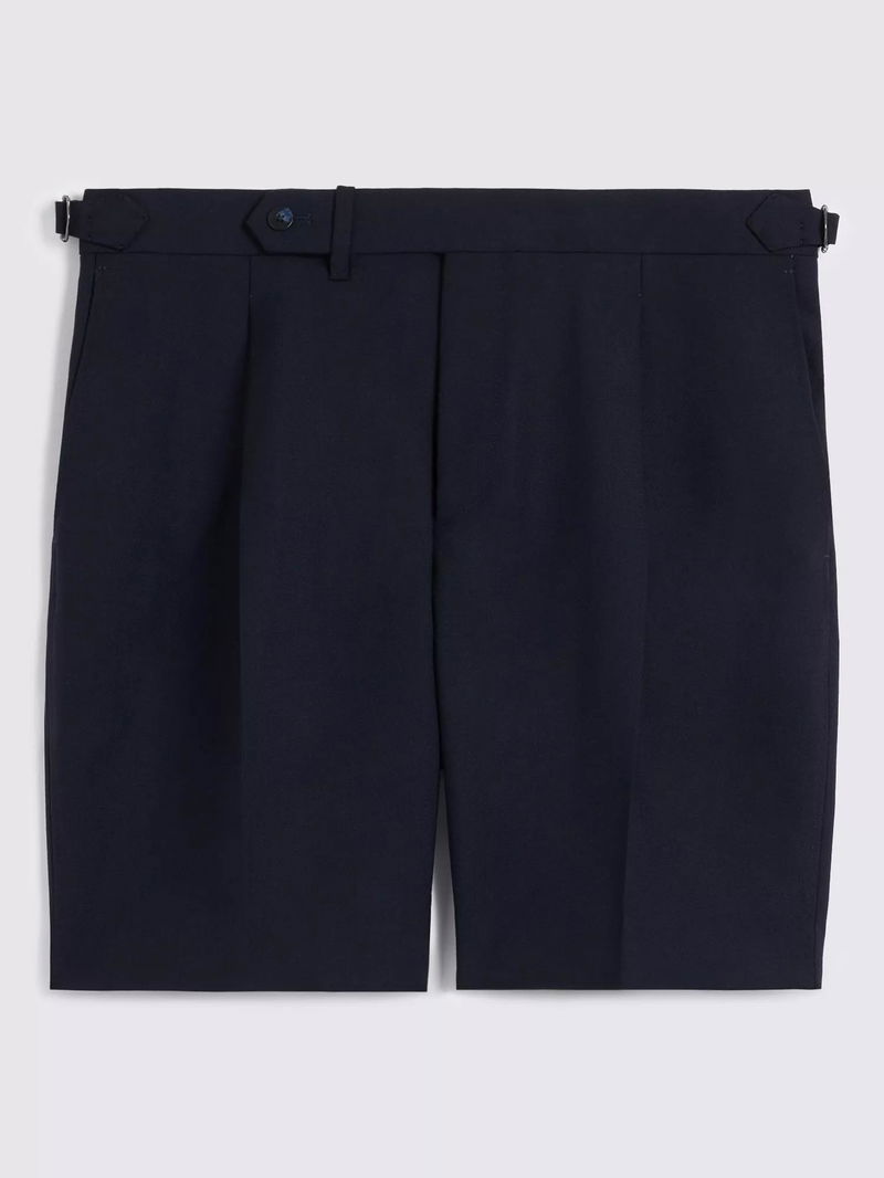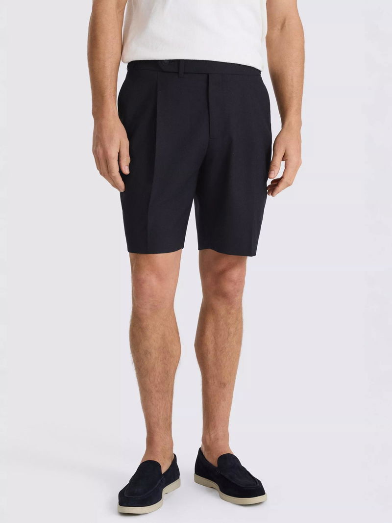Wool Pleated Shorts, Navy