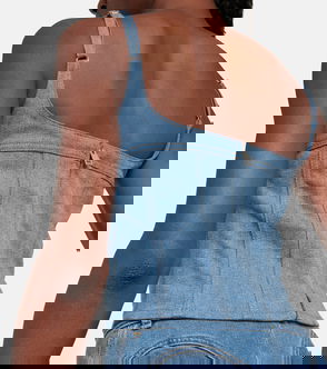 Denim And Mesh Corset Top