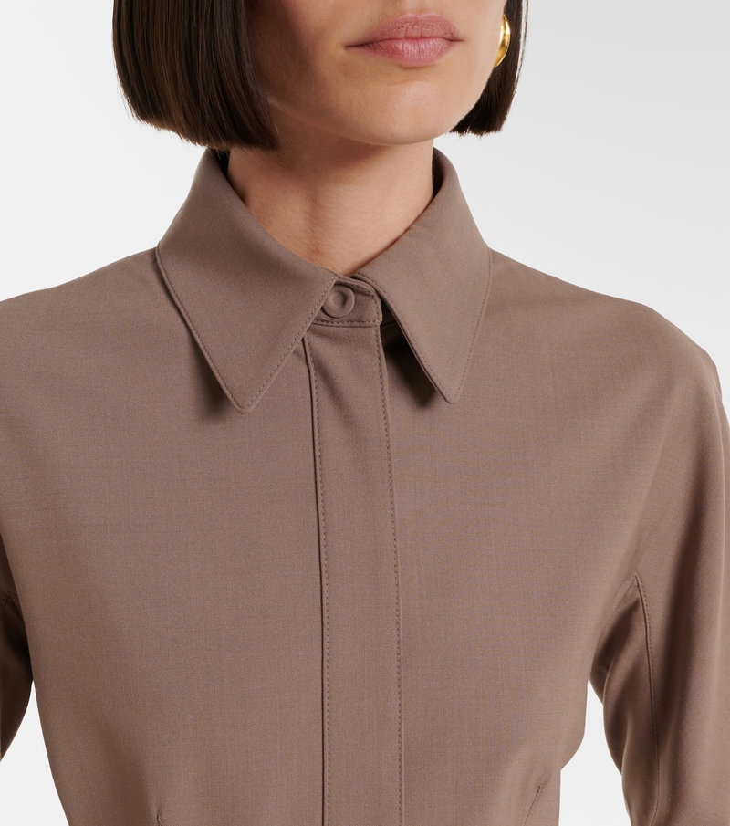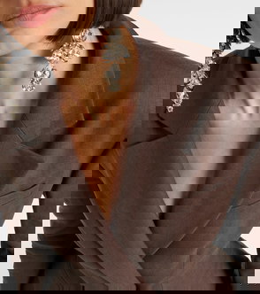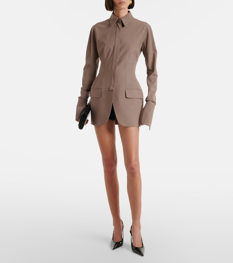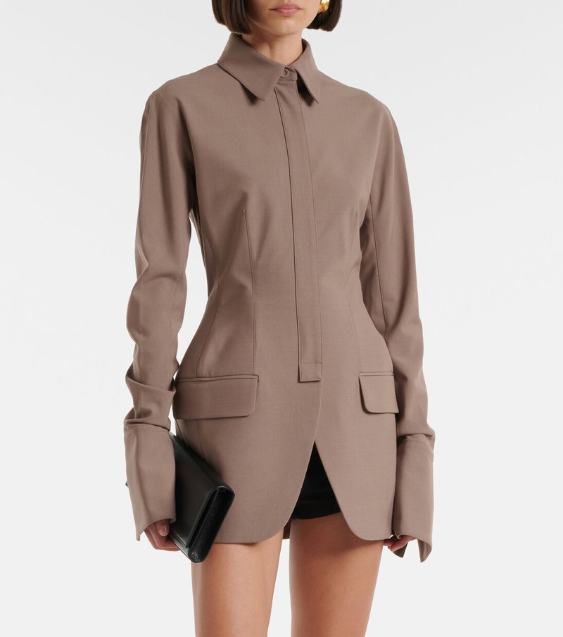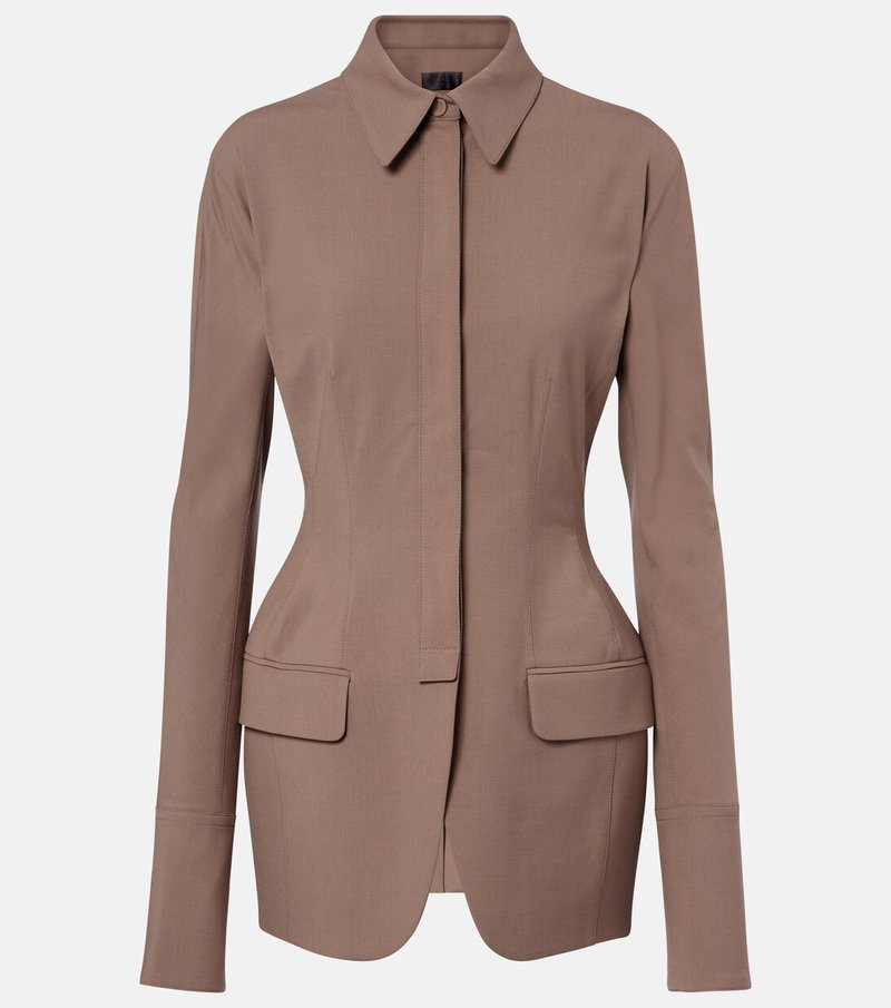 Best known for its sculptural silhouettes, the Parisian house of Mugler challenges conventional fashion design. Made from soft yarns, this jacket is tailored to an exaggerated peplum silhouette with a cinched waist.