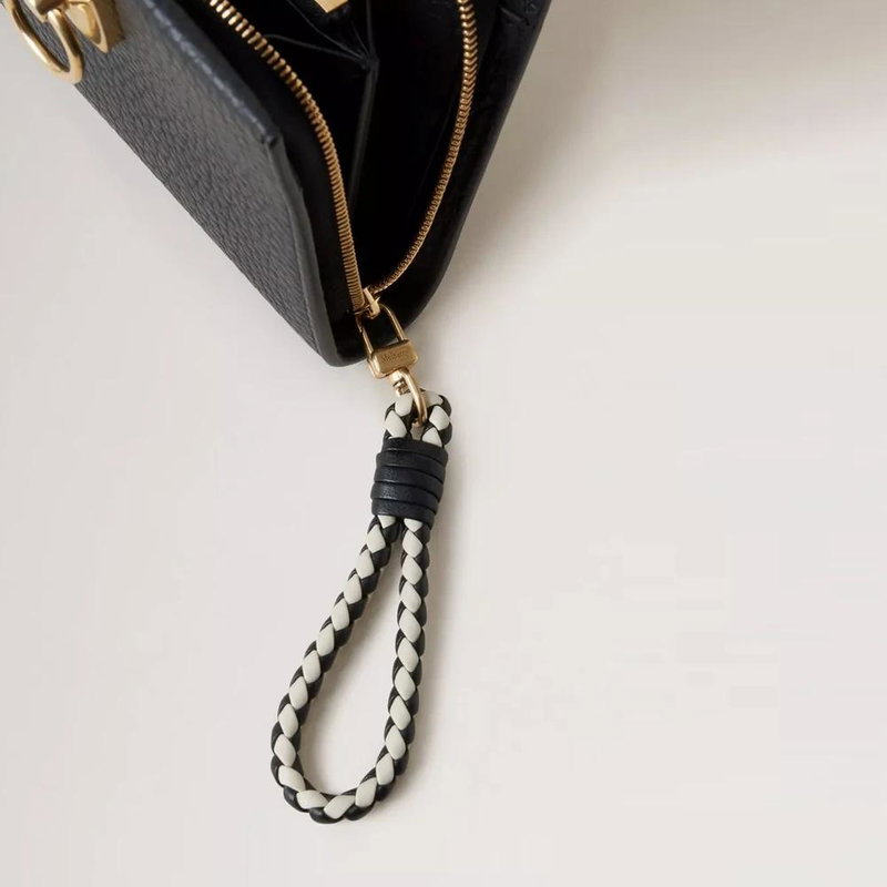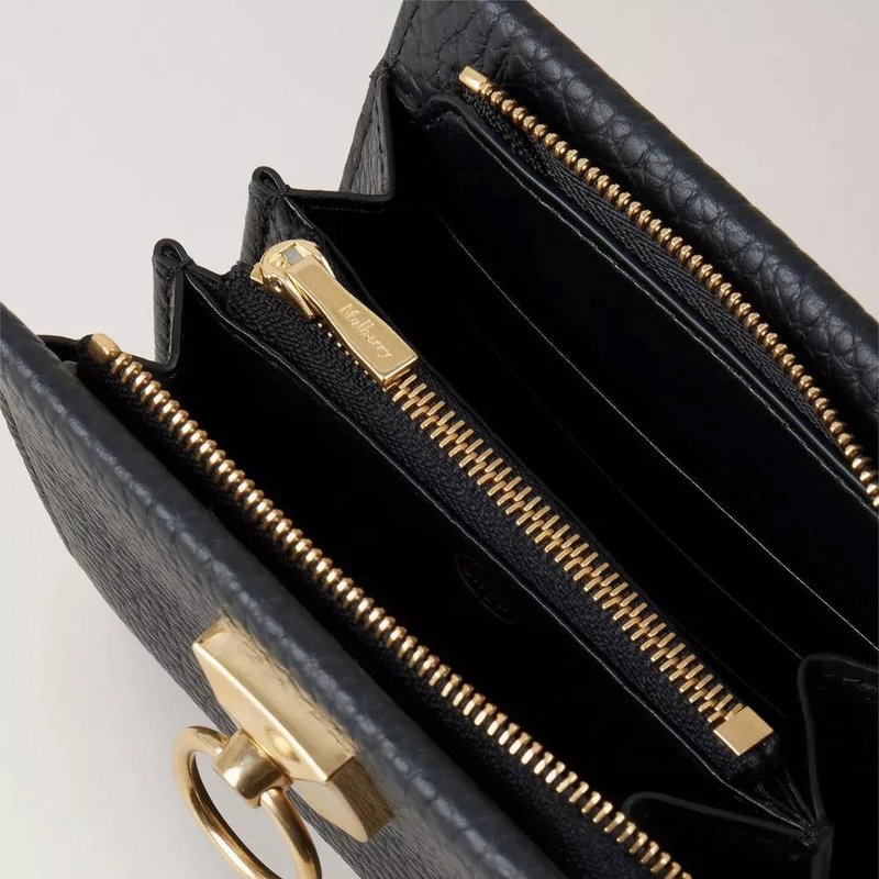 Elevate your style with this Mulberry Iris Coin Zip Around Purse. Crafted from 100% leather in Black Heavy Grain, this purse features a unique 2-tone zip puller in Chalk & Black Mixed Material. Perfect for the modern woman on the go.