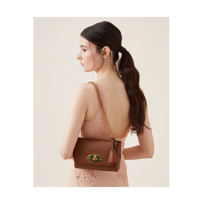 Mulberry's Lily Bag is a compact grained-leather crossbody designed for evening wear. It features a double sliding chain with braided leather for versatile carry and the signature Postman's Lock for secure closure.