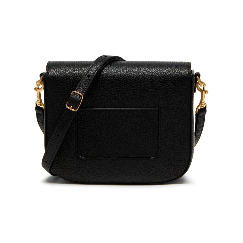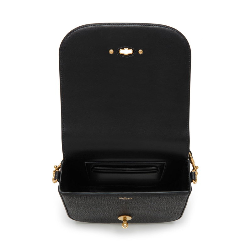 Postman's Lock closure. Adjustable and detachable leather shoulder strap. One main compartment. Three credit card slots. Brass component finish. Nappa lining.
