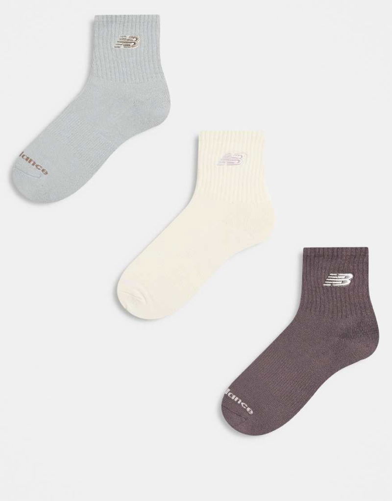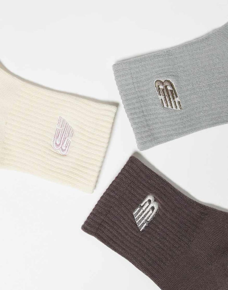 3 Pack Embroidered Logo Ankle Socks In Off White And Brown