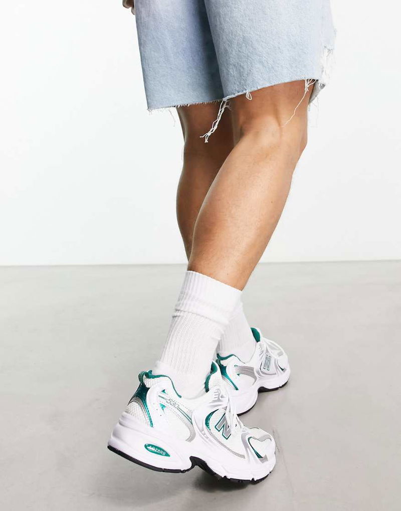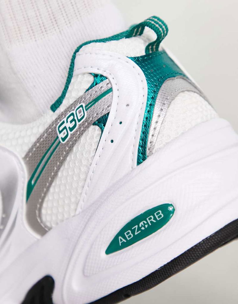 530 Sneakers In White And Metallic With Teal Detailing - WHITE