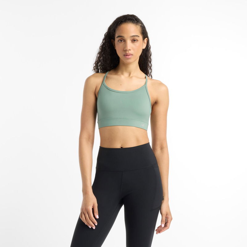 The NB Essential Yoga Bra provides light support for full focus and freedom of movement during dynamic yoga practices.