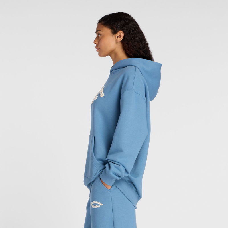 Women's Linear Heritage Fleece Long Hoodie In Blue Cotton Fleece