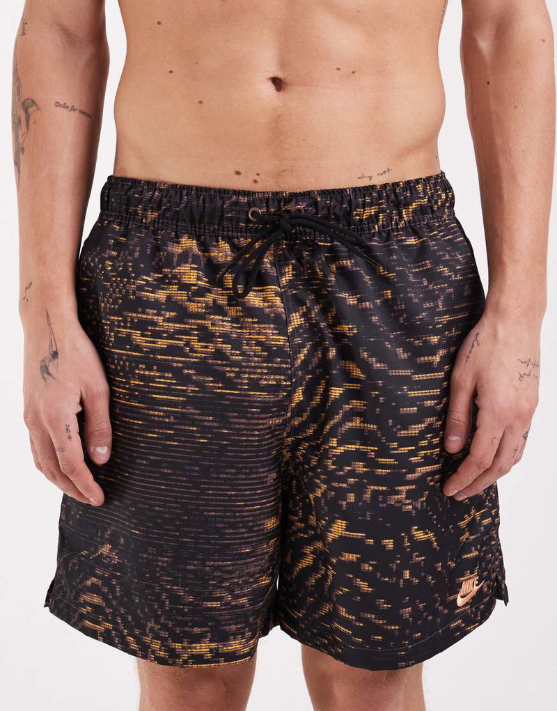 Club Woven Sci-fi Print Shorts In Black And Orange