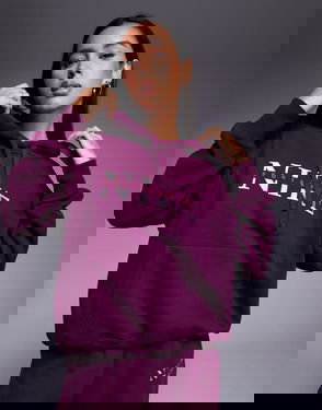 Gym Life Swoosh Double Zip Long Sleeve Top In Burgundy