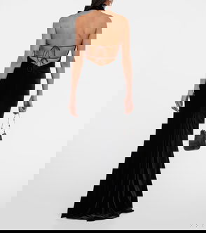 A skillful play of structure and proportion ensures the house of Nina Ricci remains a tastemaker for Parisian style. Made from pure virgin wool, this gown is defined by a satin corset and cutout neckline.