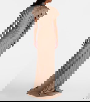 This zebra-print gown by Nina Ricci appears with Italian-infused elegance. Crafted from lustrous satin, this piece features an open back and self-ties at the shoulders.