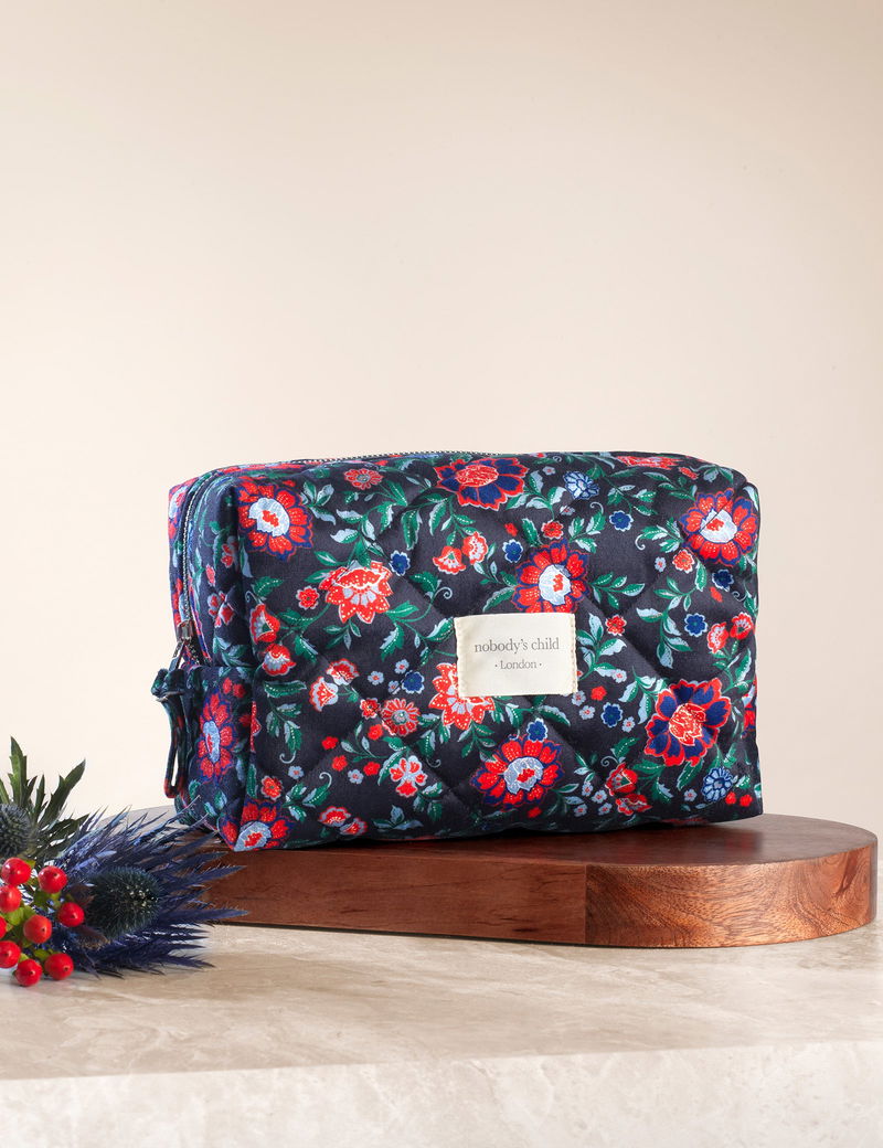 In a dark floral print, this zip-up washbag features a Nobody’s Child logo patch and enough room for all your essentials.