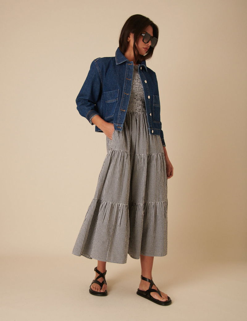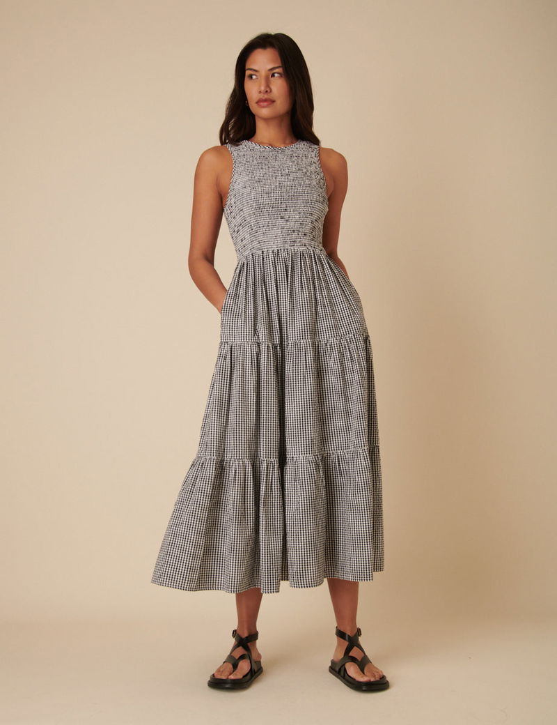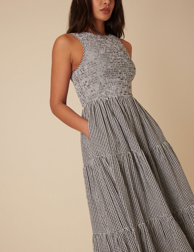 Black Gingham Sleeveless Tiered Charlie Midi Dress