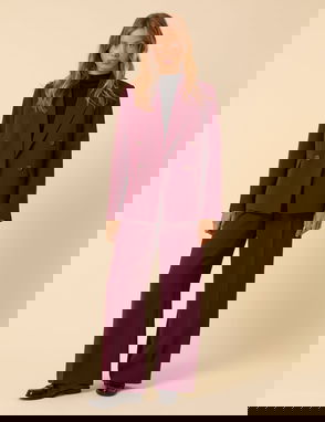This premium leather blazer features a collar, long sleeves, and single-breasted button front. Finished with side pockets, the lightly structured silhouette balances its relaxed fit.