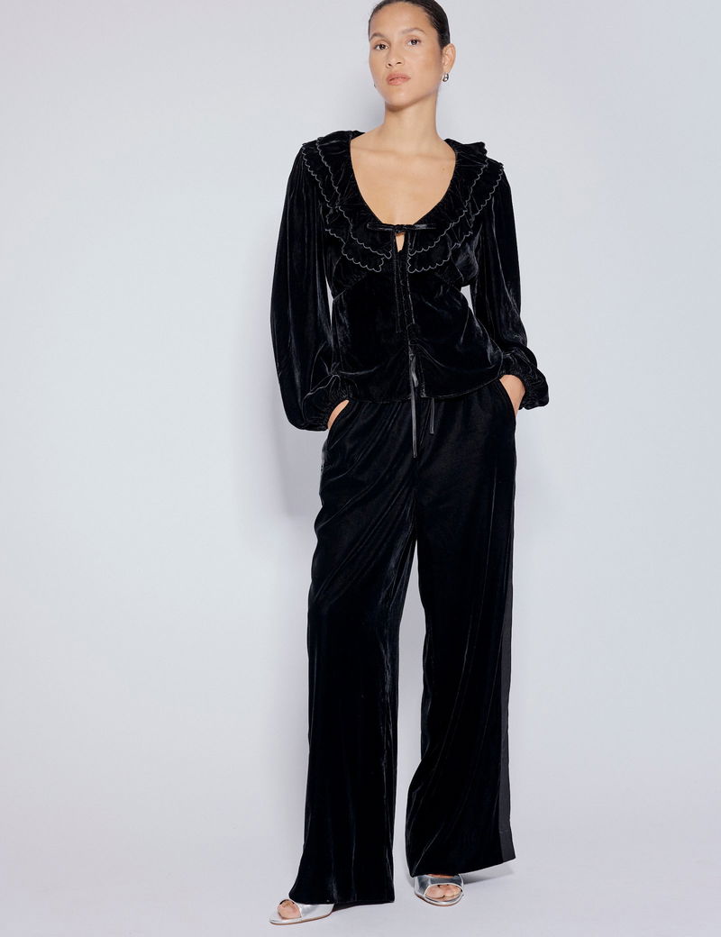 Black Velvet Contrast Satin Side Striped Trousers