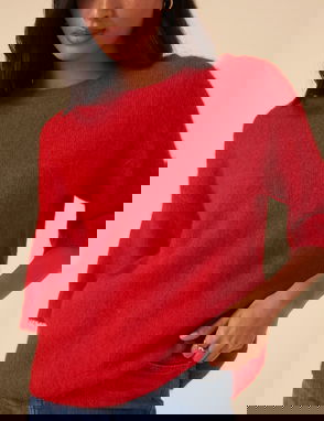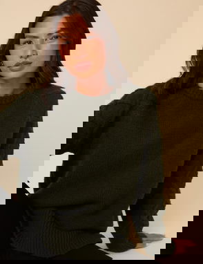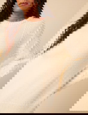 Broderie Yoke Cotton Rib Knit Jumper, Ivory
