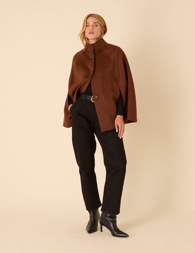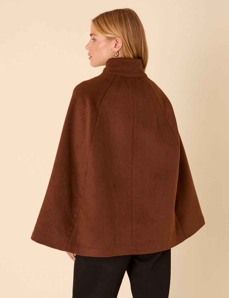 Brown Funnel Neck Cape Jacket