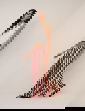 Brown Pinstripe Wide Leg Trousers