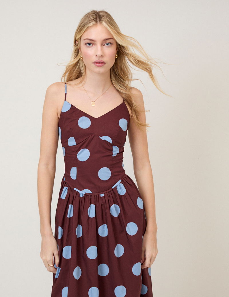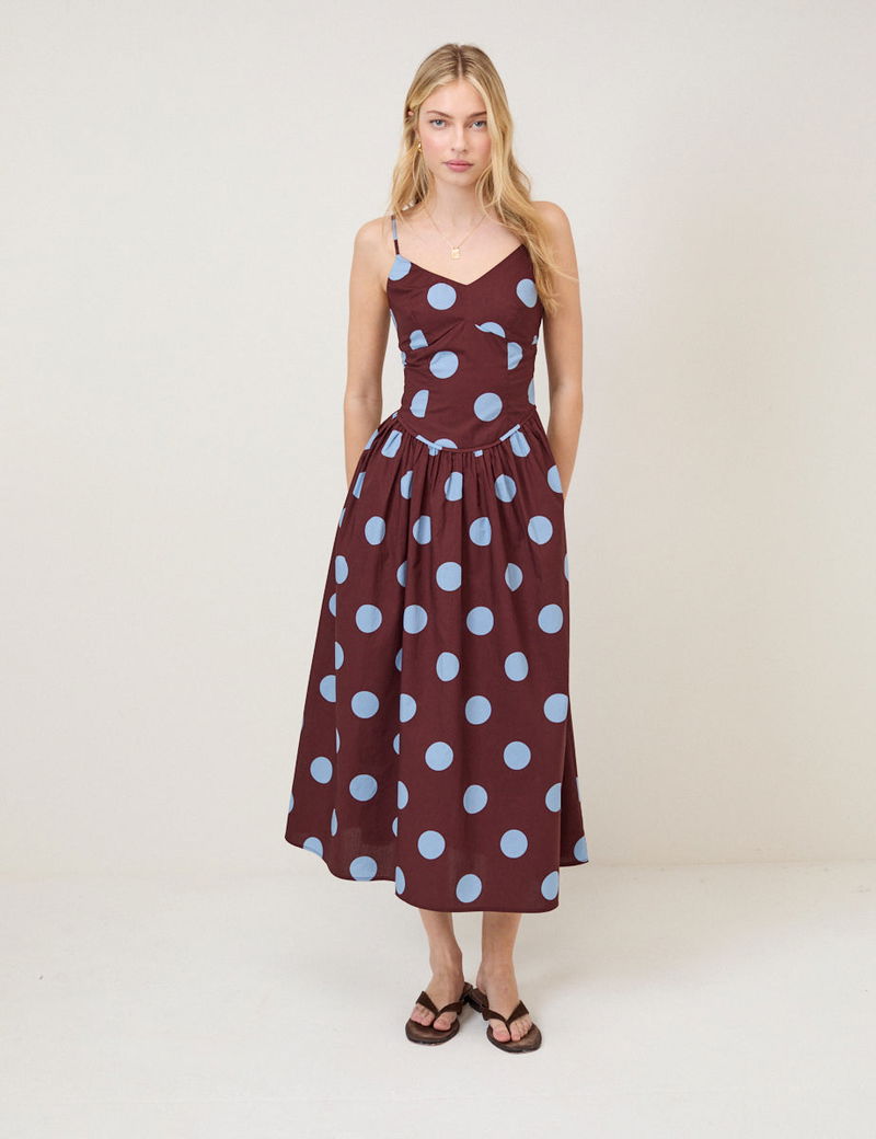 Brown Polka Dot Renley Midi Dress