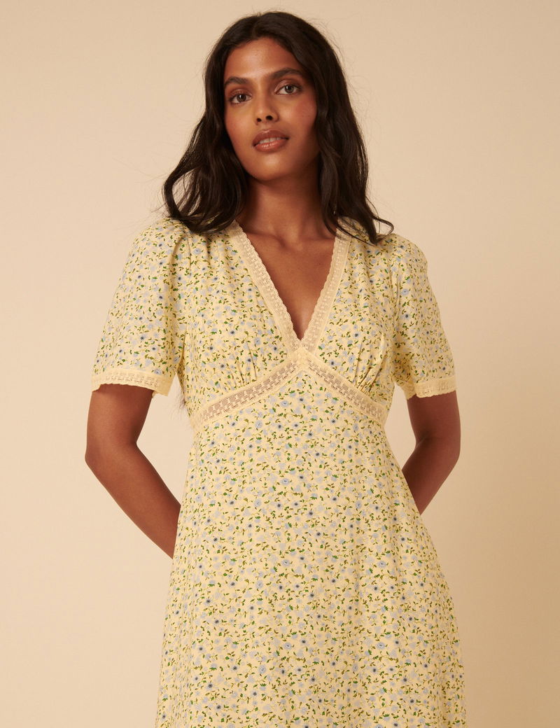 Butter Yellow Ditsy Floral Kharian Midi Dress