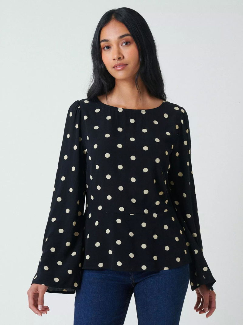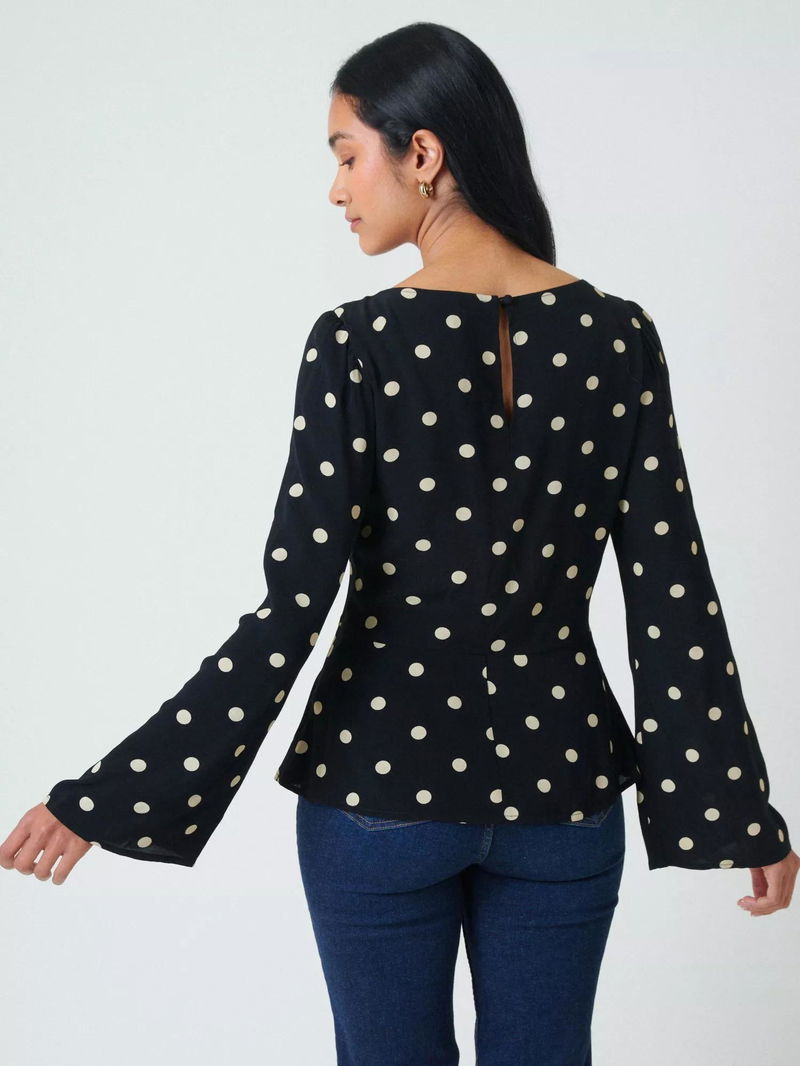 Eva Polka Dot Top Containing LENZING™ ECOVERO™ Viscose, Black
