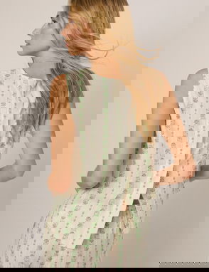 In a linen-rich blend, this fern green top features a round neckline and a sleeveless cut. Designed with a relaxed fit, it’s finished with a single button at the back leading to a subtle split below. Style with the matching shorts.