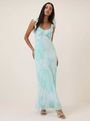 This midi dress features a tie-fastening halterneck with a square neckline.