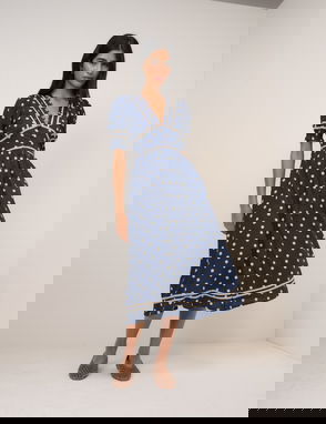 Navy Polka Dot Jacquard Angela Midi Dress
