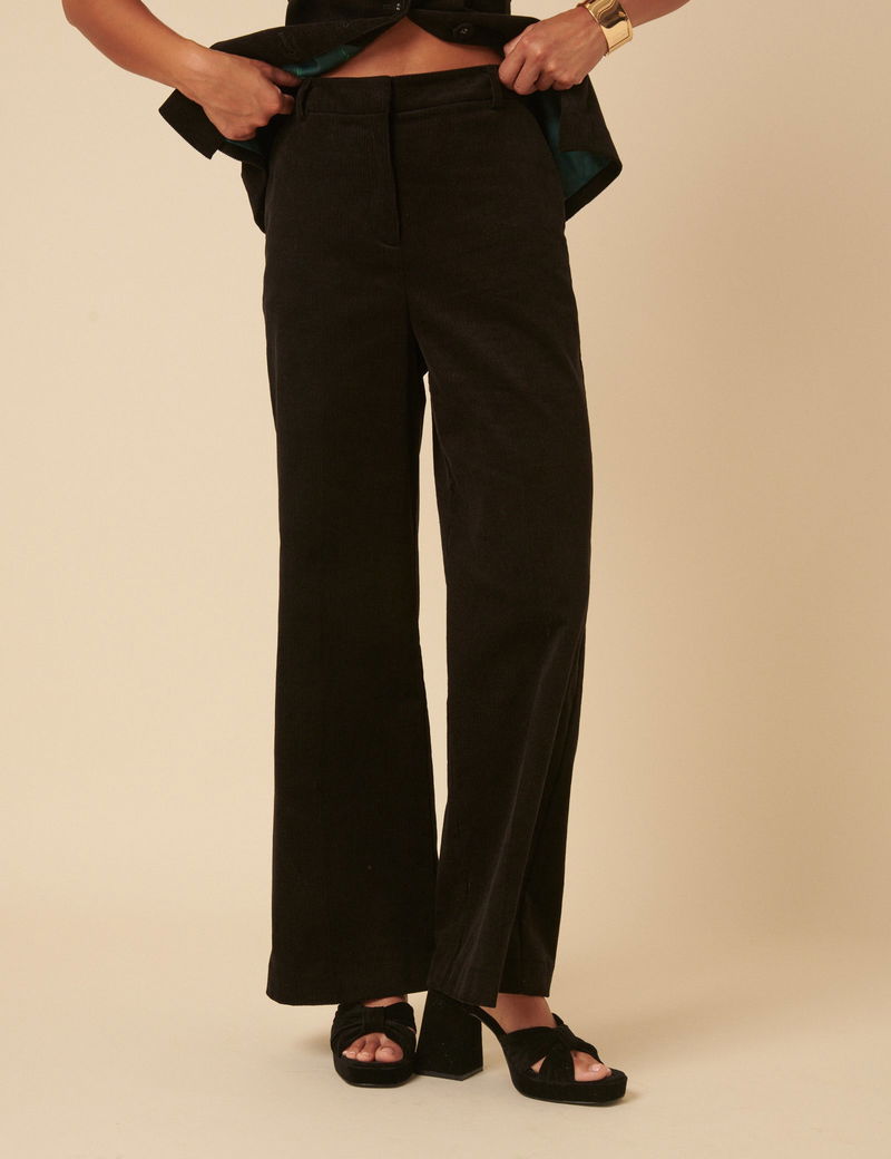 NC X Lisou Black Cord High Waist Wide Leg Trousers