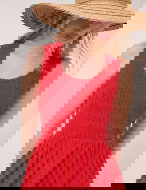 Pink Square Neck Brielle Midi Dress